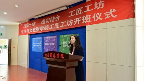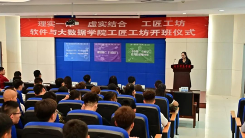 9月1日下午,软件与大数据学院在图书馆报告厅举行了工匠工坊开班仪式,企业方南京第五十五所技术开发有限公司工匠工坊经理王海龙、商业项目拓展经理马正彧及工匠工坊工程师出席会议,校方出席仪式的有教务处处长崔娜,软件与大数据学院院长秦婷,副院长白文荣、田雪及软件与大数据学院全体教师、工匠工坊全体学生,2018、2019级学生代表。开班仪式由软件技术系系主任王晓燕主持。