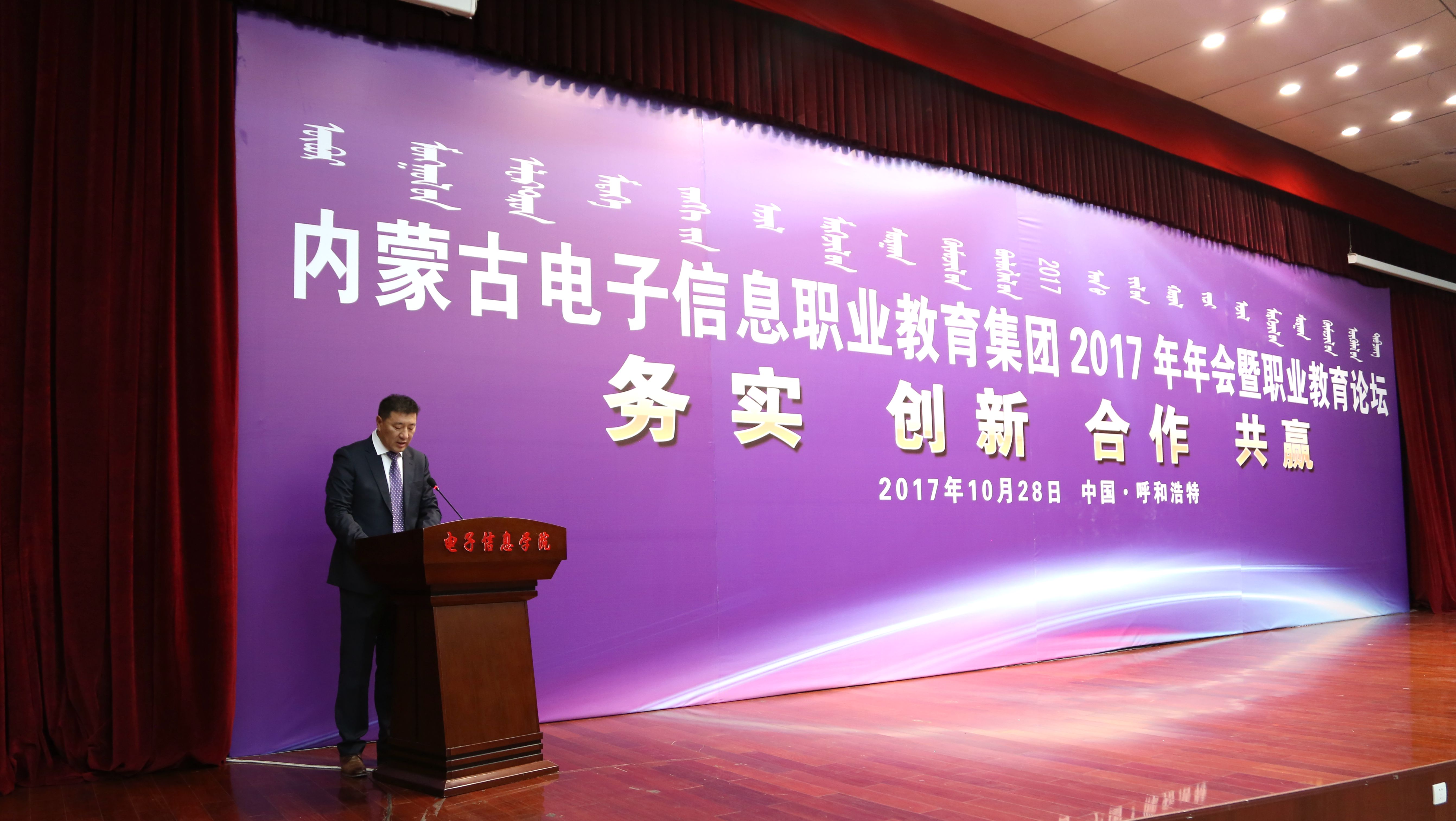 10月28日上午,以“务实、创新、合作、共赢”为主题的内蒙古电子信息职业教育集团2017年年会暨职业教育论坛在我院成功举办。