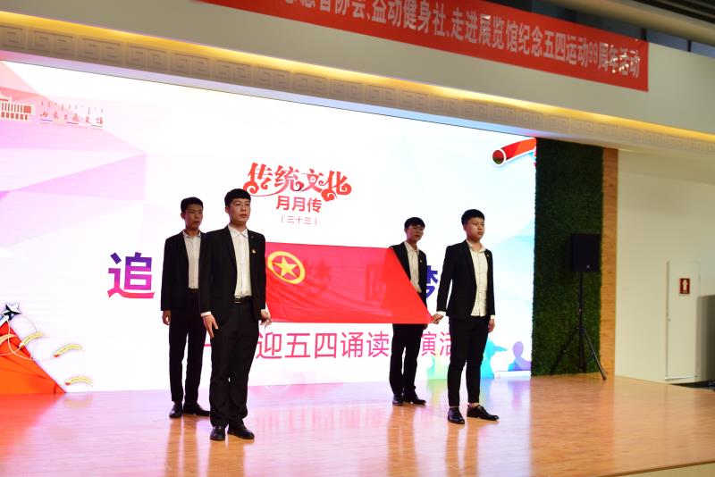 伴随着激情洋溢的团歌声,活动在内蒙古展览馆主持人的精彩开场白中正式拉开帷幕,共青团员们在领誓人雷娜同学的带领下,面对鲜艳的红旗,高举右手庄严宣誓,表达对团无限忠诚的坚定信念。我系学生干部代表牛瑀萌发言,号召共青团员奉献热血青春,弘扬五四精神。展览馆青年代表也诵读了习近平总书记自2013年以来写给青年学生的15封信,财经管理系青年志愿者们的节目表演也精彩纷呈,益动健身社团带来的啦啦操表演、文艺部带来歌曲《春风十里》 、舞蹈《阿朵依》、诗歌朗诵《祖国颂》等。