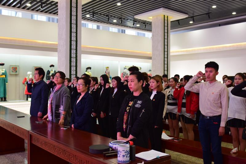 为进一步弘扬五四精神,传承共青团的优良传统。5月3日下午3点,财经管理系团总支苏雅老师、任益老师带领青年志愿者与内蒙古展览馆共同举办了“重温入团誓言 牢记青春使命”活动。内蒙古展览馆党总支书记乔永平,内蒙古展览馆副馆长戈利平出席本次活动。
