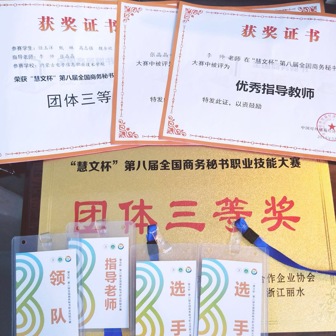 5月20日,第八届全国商务秘书职业技能大赛在浙江丽水职业技术学院圆满落幕。来自22个省市的73所学校组建了103支队伍选派了500余人参赛,一批“985”和“211”建设高校首次派队参赛,本次大赛参赛规模、选手水平、竞赛激烈程度均为历届之最。经过前后两天多轮次近9个小时的激烈角逐,信息管理系任玉洋、高志强、甄琳、魏全欣四名选手在本次比赛中荣获团体三等奖的优异成绩。