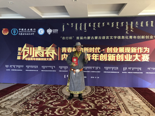 9月20日至9月21日,由自治区团委、网信办、经信委、人社厅、农牧业厅、商务厅、扶贫办共同主办,内蒙古青年创业就业服务中心、内蒙古自治区青年企业家协会、内蒙古自治区学生联合会、内蒙古青年创业就业基金会、内蒙古电子信息职业技术学院承办,中国农业银行内蒙古分行冠名的“农行杯”第五届“创青春”内蒙古青年创新创业大赛——首届内蒙古蒙古语言文字信息化青年创新创业专项赛颁奖礼在我院会议中心2号报告厅成功举办。