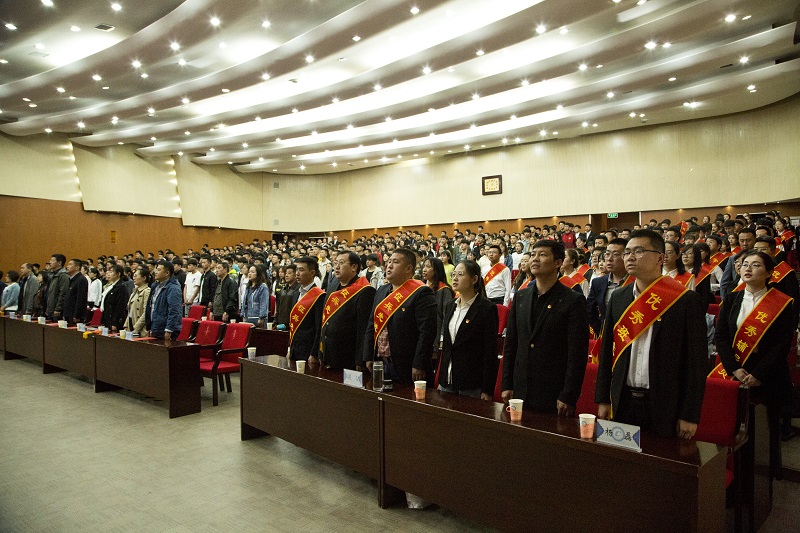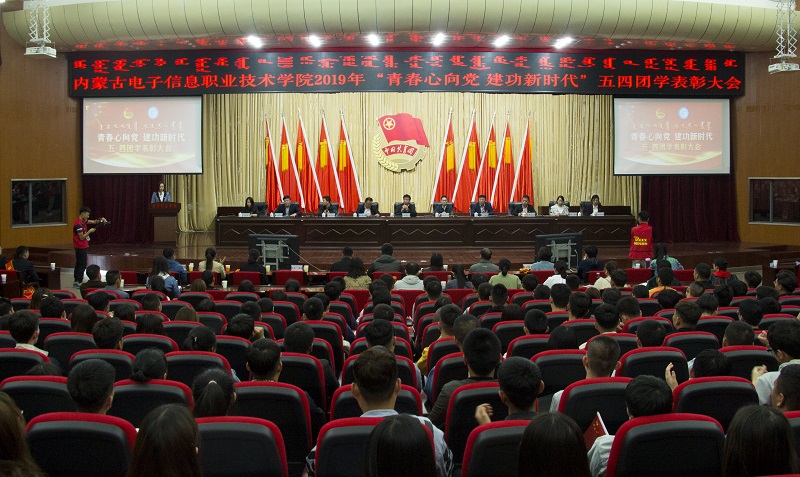 4月30日下午,学校一号报告厅气氛热烈,我校2019年“青春心向党 建功新时代”五四团学表彰大会隆重召开。学校党委书记张鹏宇,党委副书记、纪委书记张涵义,党委委员、副校长蒋蒙安、阿拉坦巴根那,党委委员、组织(统战)部部长张宏俊,党委委员、宣传部部长兼工会主席李占岭出席大会。学生处、团委及各二级学院、附属中专学校相关负责人、团学管理工作人员和各级学生代表共500余人参加大会。大会由学校团委书记刘泽利主持。