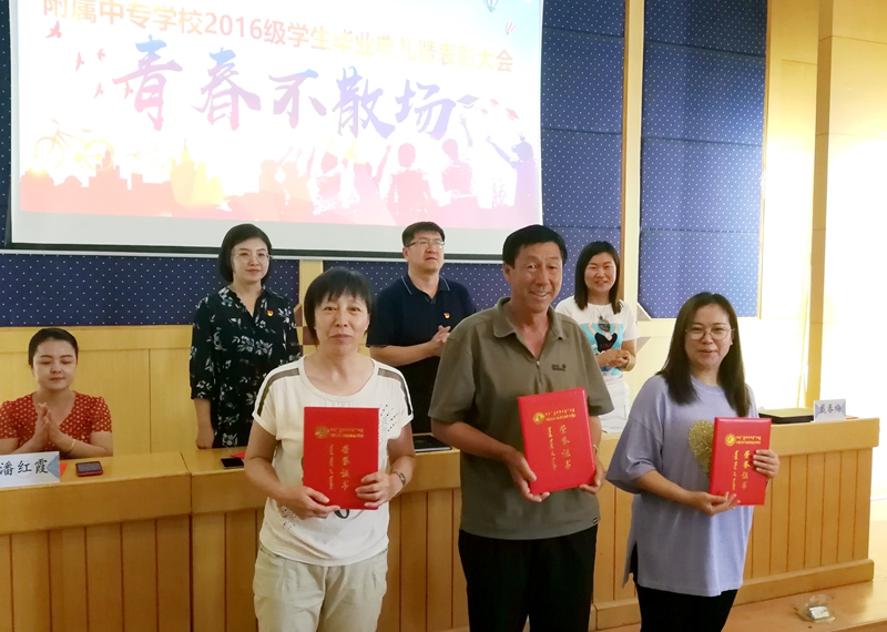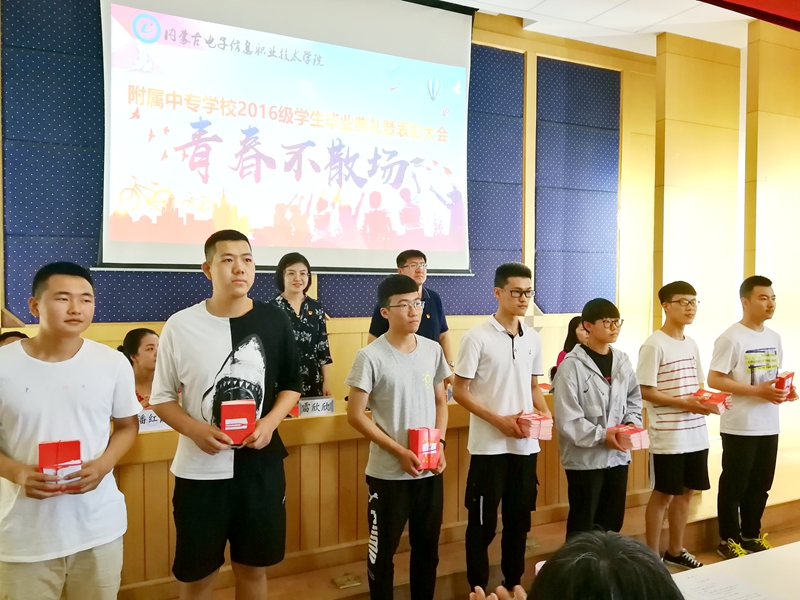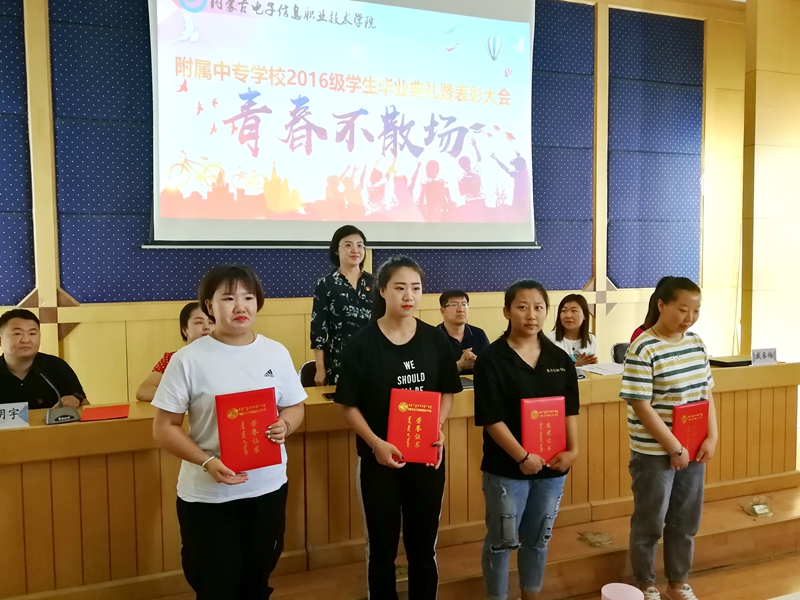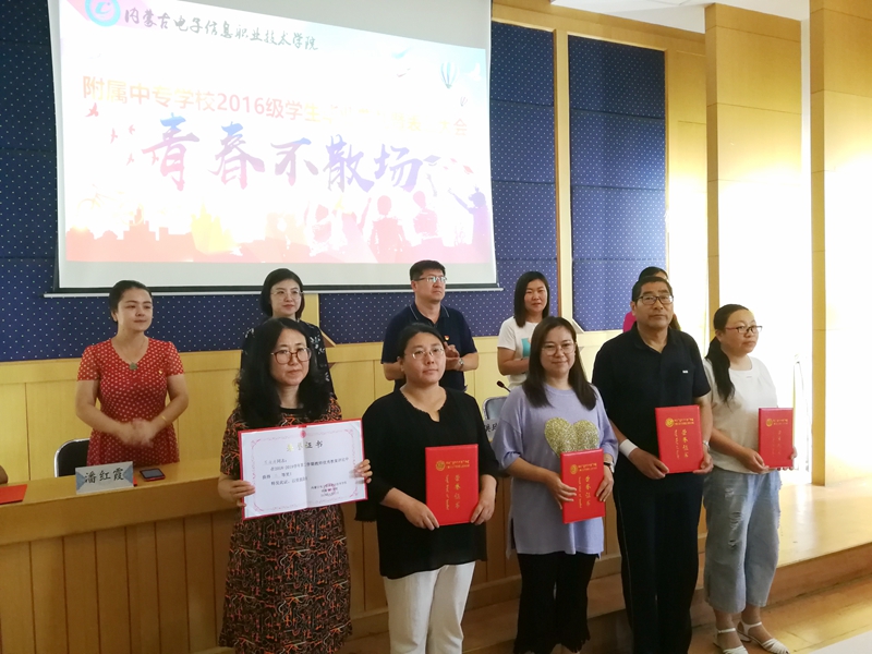 刘明宇宣读了《内蒙古电子信息职业技术学院附属中专学校关于表彰2018-2019学年三好学生、优秀学生干部、优秀毕业生和优秀班集体的决定》,决定授予吴新雨等24名学生“三好学生”荣誉称号、授予赵嘉宏等33名学生“优秀学生干部”荣誉称号、授予常婧等21名学生“优秀毕业生”荣誉称号。