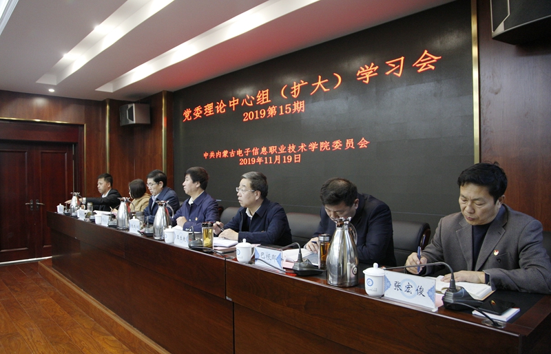 11月19日下午,学院党委理论中心组(扩大)召开2019年第十五次集体学习会议。学校全体党委委员和副处级以上干部参加会议。会议由党委副书记、纪委书记张涵义主持。