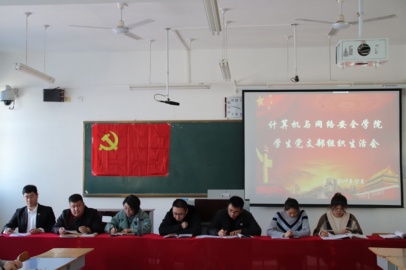 根据学校《关于开展“不忘初心、牢记使命”主题教育党总支处级党员领导干部专题民主生活会、党支部专题组织生活会及民主评议党员工作的通知》,贯彻“不忘初心、牢记使命”主题教育精神,12月10日,计算机与网络安全学院学生党支部开展组织生活会。