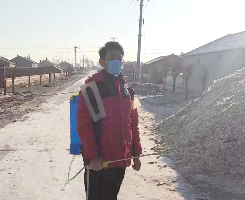 营销171班李建成,中共预备党员,家住通辽市奈曼旗明仁苏木辣椒铺村,在村委会领导的号召下,义无反顾的加入防疫前线,每天背起喷壶进入村民家,挨家挨户的对厨房、客厅、杂货间等地方进行消毒工作。虽然工作量很大,但李建成同志从未喊过累,始终践行着自己的入党誓言,时刻接受组织的考验。