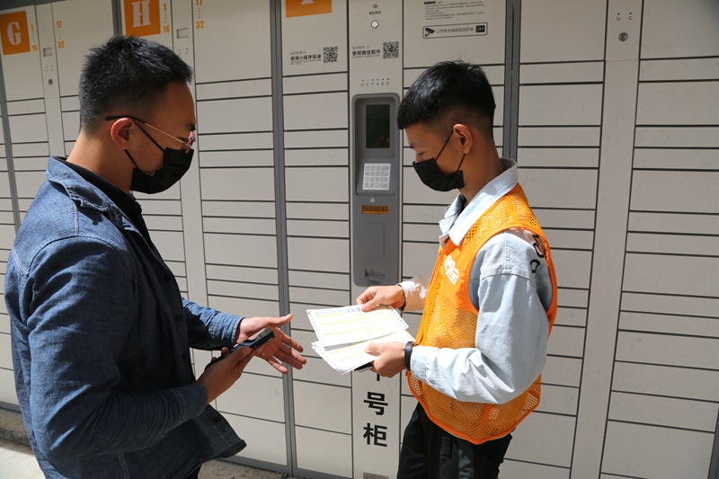 5月12日上午,学校党委委员、宣传部部长兼工会主席李占岭,后勤管理处处长宋国松,副处长孙凤龙与内蒙古近邻宝科技有限公司内蒙区负责人姚兵等人,对我校校园快递服务中心进行了检查验收。此次验收着重检查了校园快递服务中心的运营、消毒、安全防护等并体验了快递柜的使用。