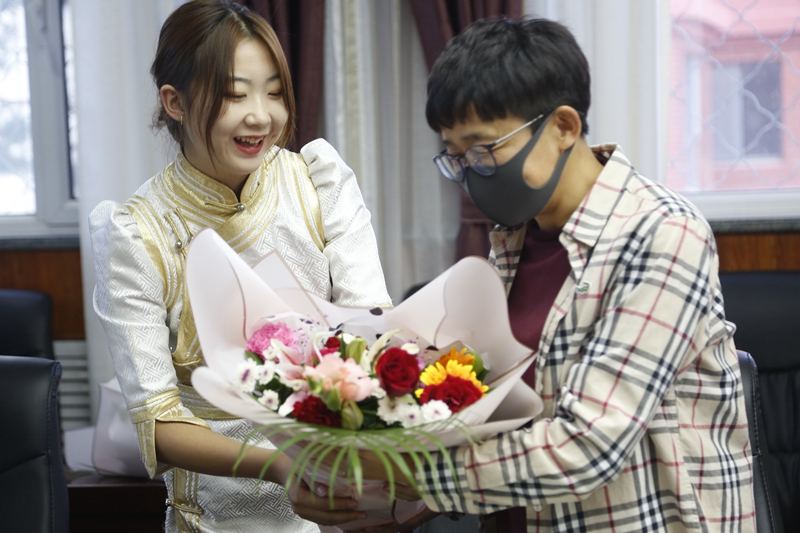 最后,学生代表为老师们送上美丽的鲜花,表达他们的感恩之心。