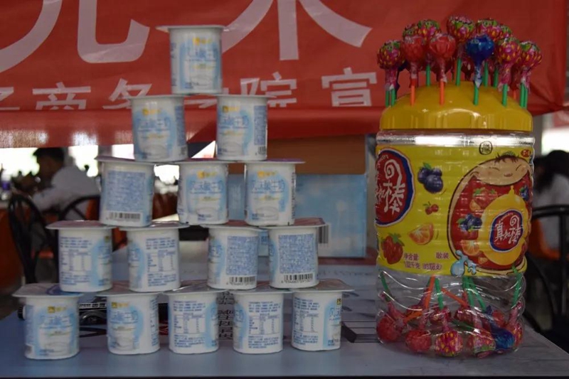 在横幅前面摆放着小礼品,“光盘”的同学就可以换到一份小礼品,让“光盘”者们在这瑟瑟秋风中感受到来自老师和同学们的关爱。