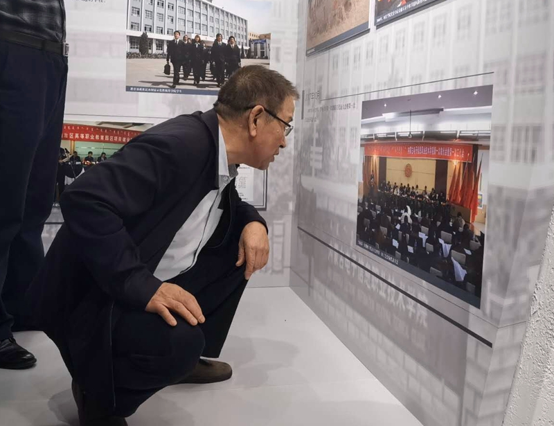 在校史馆,祁柱晓院长看着一张张老照片,为现场的同事们讲起过去的很多艰苦创业的故事,回忆起曾经为学校发展做出贡献的多位老同志,并为学校近几年所取得的教育教学成绩倍感欣慰,也对学校高质量发展充满信心。