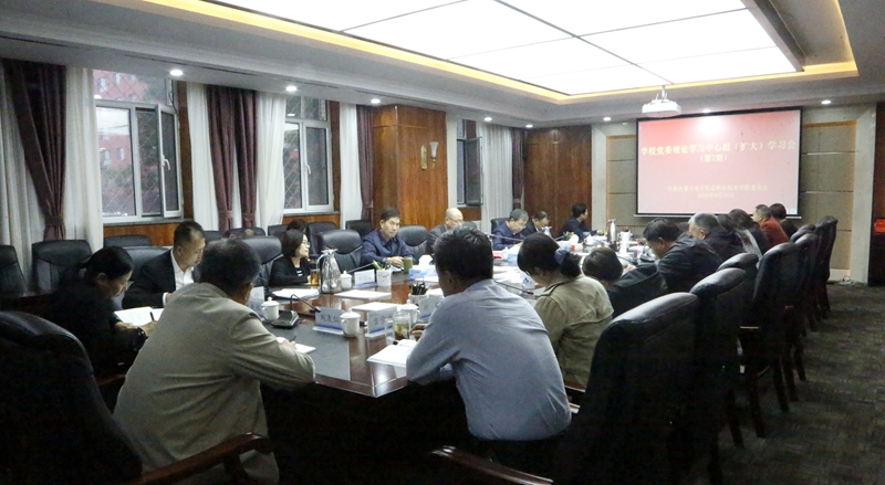 9月28日下午,学校在会议中心2号会议室召开本学年第七期党委理论学习中心组(扩大)学习会,学校党委班子成员,各二级学院党总支书记,各职能部门主要负责人参加了学习会,会议由党委书记李向东主持.