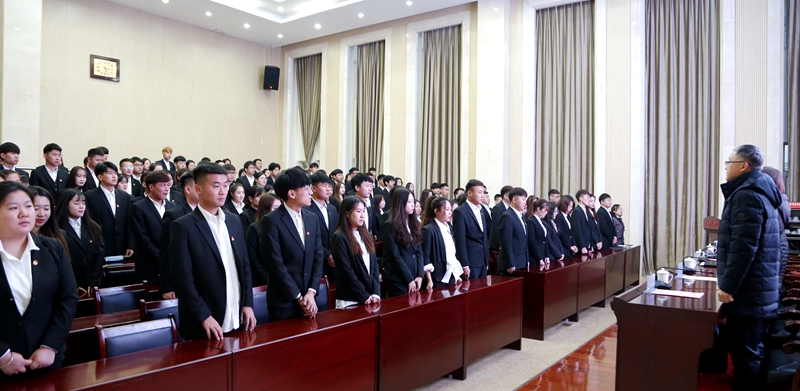 11月30日下午,学校党校在会议中心2号报告厅举行第三十二期发展对象培训班结业典礼。学校党委委员、组织统战部部长、党校副校长张宏俊;各二级学院党总支书记及全体学员参加典礼。