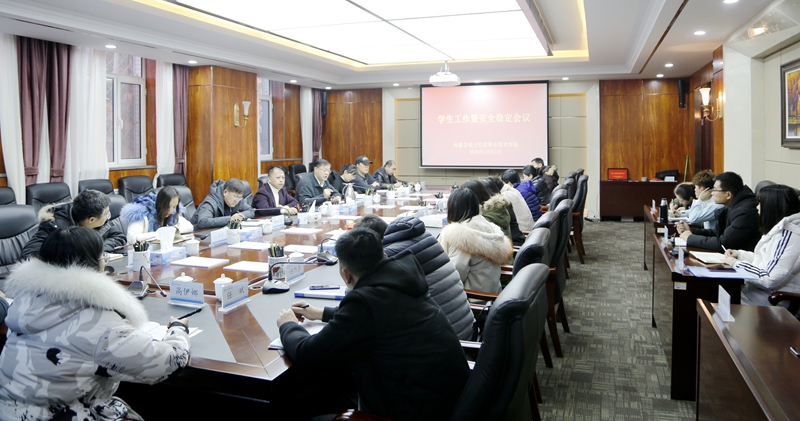 12月2日下午,学校在会议中心二号会议室召开学生工作暨安全稳定工作会议,学校党委委员、宣传部部长兼工会主席李占岭主持会议,学生工作处科级以上干部、各二级学院分管学生工作副书记、副院长、学生科长、团总支书记、附属中专学校校长参加会议。