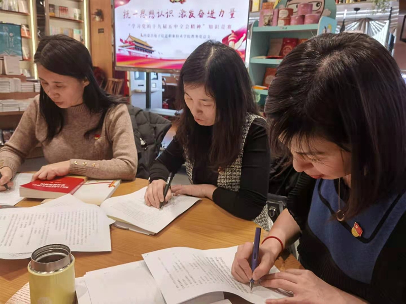 党的十九届五中全会描绘了我国未来发展的宏伟蓝图,作出了应对变局、开辟新局的顶层设计,在党和国家发展进程中具有全局性、历史性意义。为了使总支党员更加深入学习领会十九届五中全会精神,12月4日下午2:50,教务党总支第一支部、第二支部在新华书店腾飞路店开展题为“统一思想认识•激发奋进力量”的读书会和知识竞赛活动。教务党总支第一支部、第二支部20多名党员参加了此次活动,活动由教务党总支书记崔娜主持。