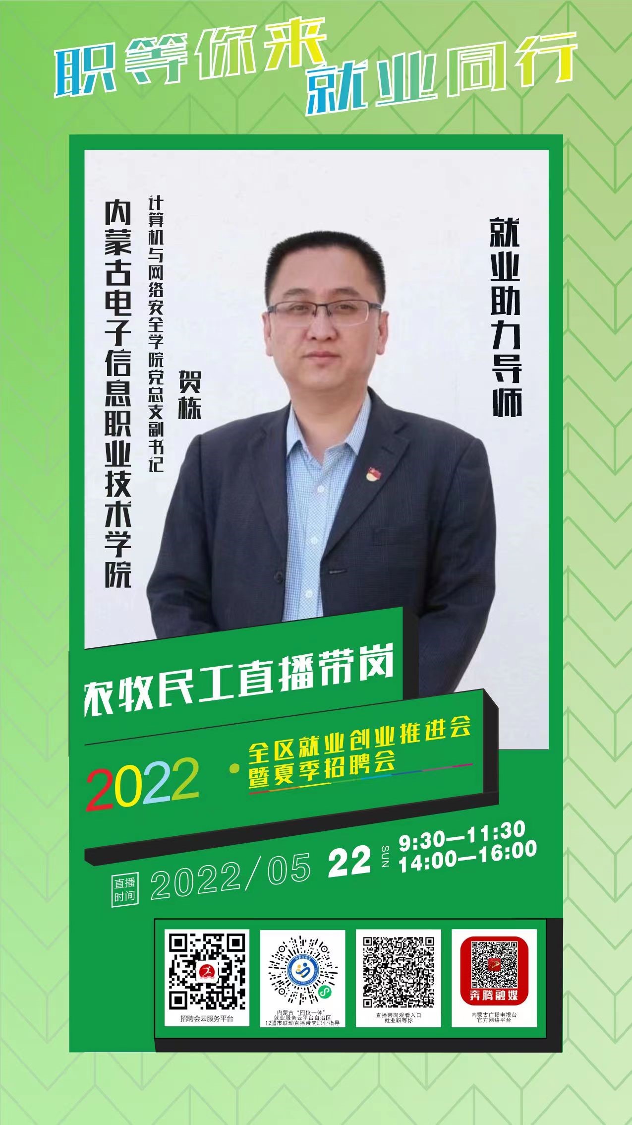 我校和林格尔新区分校办事处副主任贺栋、就业处就业服务中心主任廉相宇以就业助力导师身份参加了农牧民工直播带岗活动,同时为全区的大学生提供岗位推荐与就业咨询。