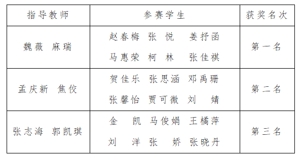 经过激烈的角逐,赛出了最终的比赛结果,具体如下表:
