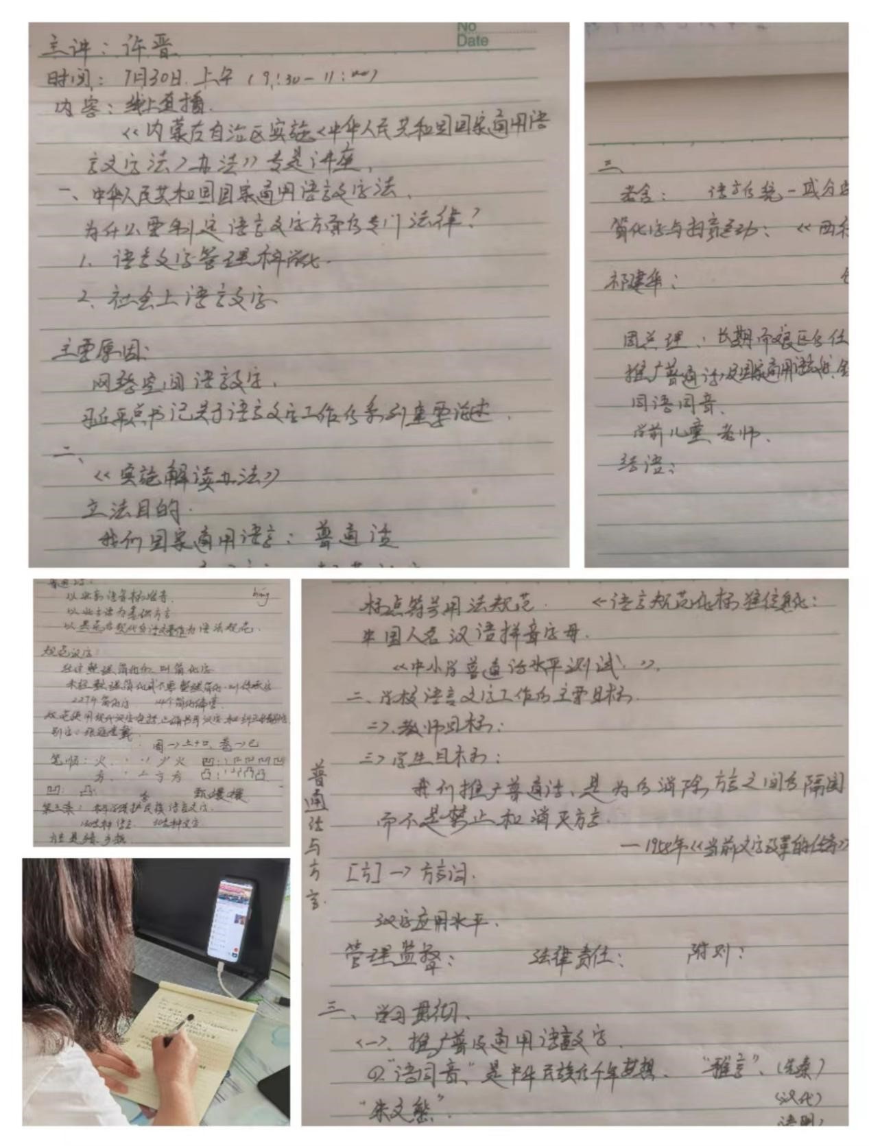 许晋教授曾担任《内蒙古自治区实施〈中华人民共和国国家通用语言文字法〉办法》专家组组长,专题讲座从党中央关于语言文字的大政方针、内蒙古实施国通法办法修订内容、学习贯彻需厘清的几个问题三个方面进行了讲解,重点讲解了内蒙古实施国通法办法修订的相关内容。各盟市参训学员集中观看了线上直播。