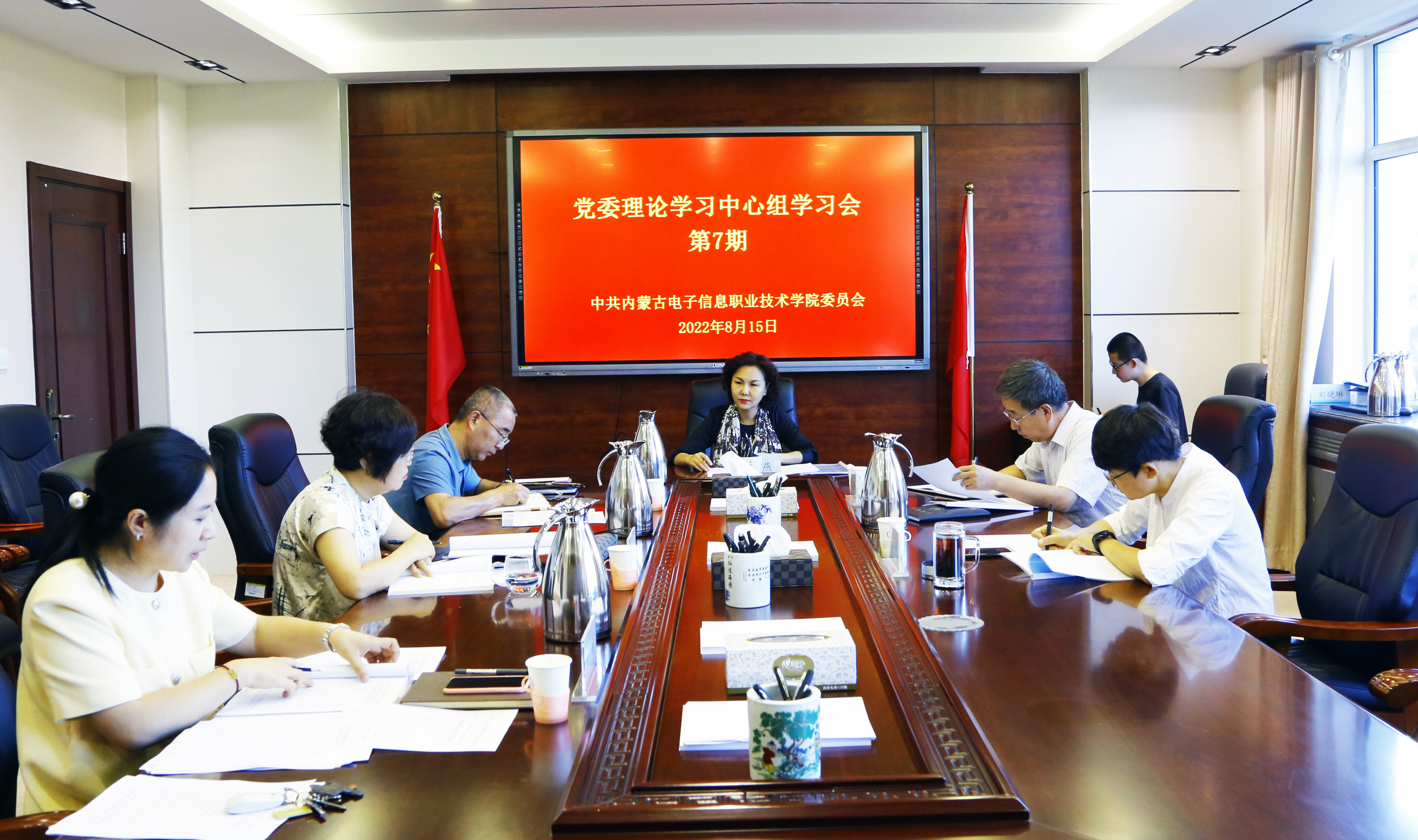 8月15日,学校党委理论学习中心组在行政楼322会议室举行2022年第七次集体学习,围绕习近平总书记系列重要讲话精神进行深入学习。学校党委书记李春燕主持集体学习会并讲话,学校党委副书记、校长王生铁,学校党委委员、副校长恩和门德、秦婷,学校党委委员、纪委书记刘建英参加会议。