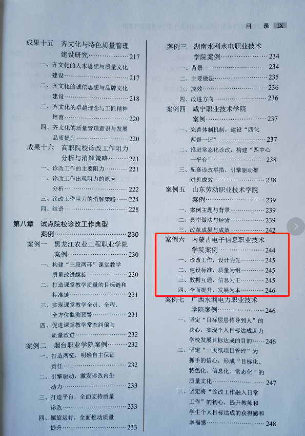 近日,淄博职业学院姜义林、李联卫、郭磊担任主编的《职业院校教学诊断与改进制度建设与运行全流程操作实务》由清华大学出版社出版,该书收录了我校张学敏老师撰写的“以质量提升为导向,促学生全面健康发展”的典型案例。该案例介绍了我校在内部质量保证体系诊断与改进建设过程中,学生层面以智慧学工系统建设为支撑,为促进学生培养质量不断提升,推动学校学生管理能力和管理质量变革的做法。