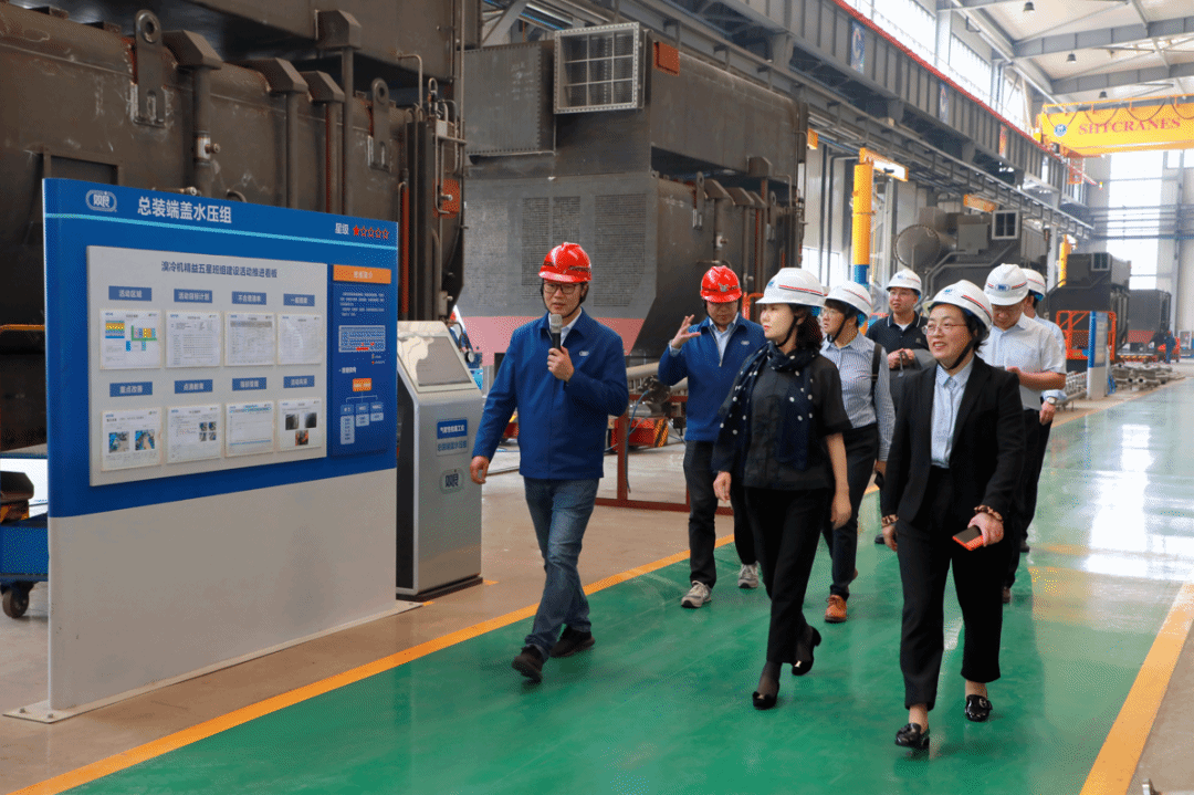 在双良集团有限公司总裁马培林,大客户管理中心副总经理路永南,总裁办主任周冬敏,双良节能人力资源部经理李天明等人陪同下,李春燕一行首先实地参观了双良集团货运码头、包装智能车间、节能绿色智能车间、集团展示馆等地,听取关于双良集团有限公司发展历程、核心业务、智能产业发展等方面的情况介绍。
