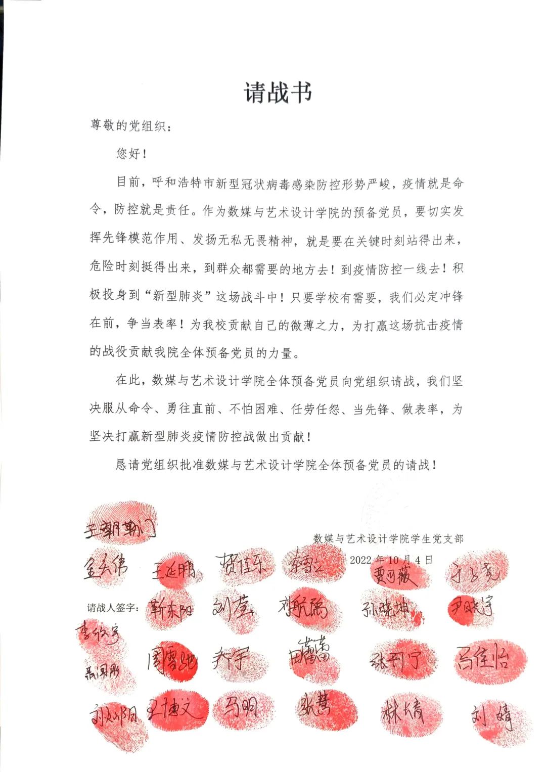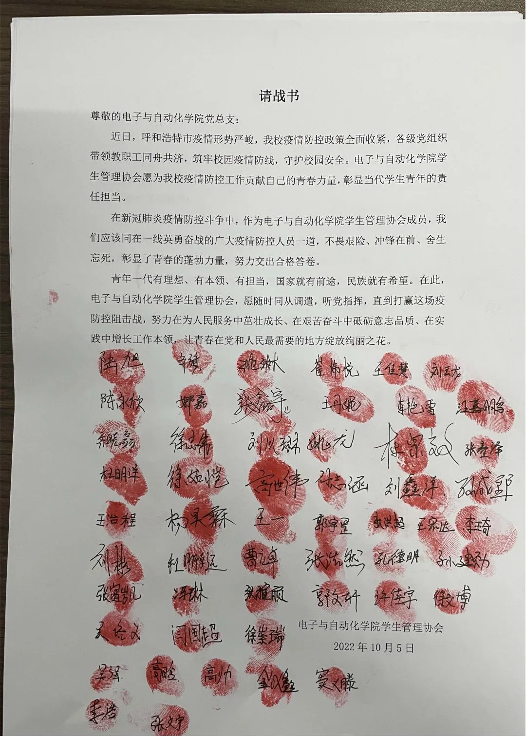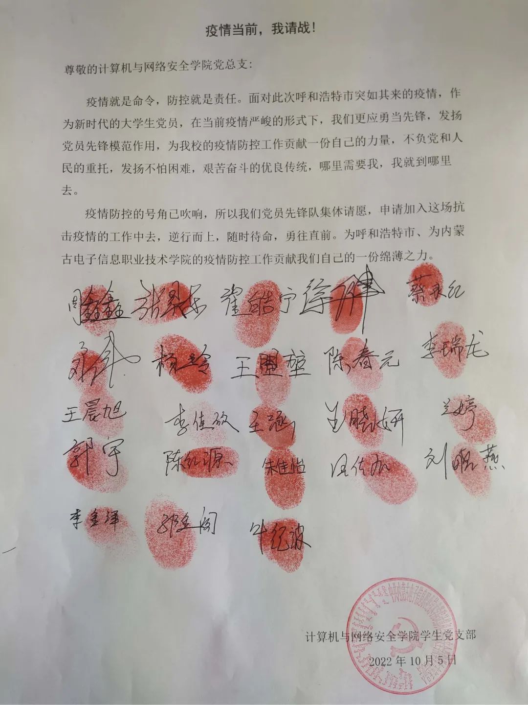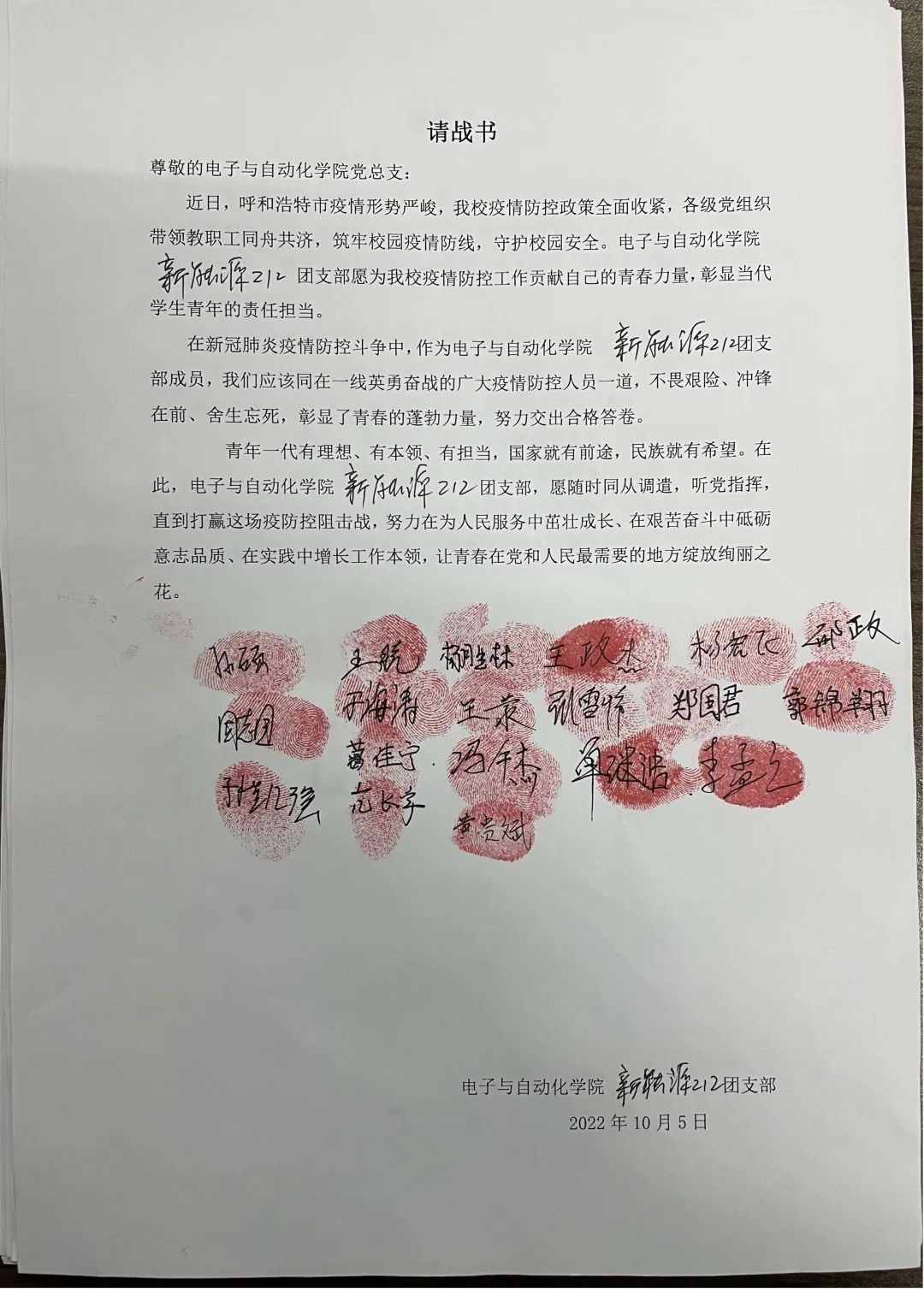 “国家有难匹夫有责”,青年志愿者们第一时间站出来请战,站出来承担历史使命。从他们身上看到了新一代青年的责任意识,担当意识,我们坚信只要大家团结一心,众志成城,定会打赢这场没有硝烟的战争。呼市加油!电子加油!