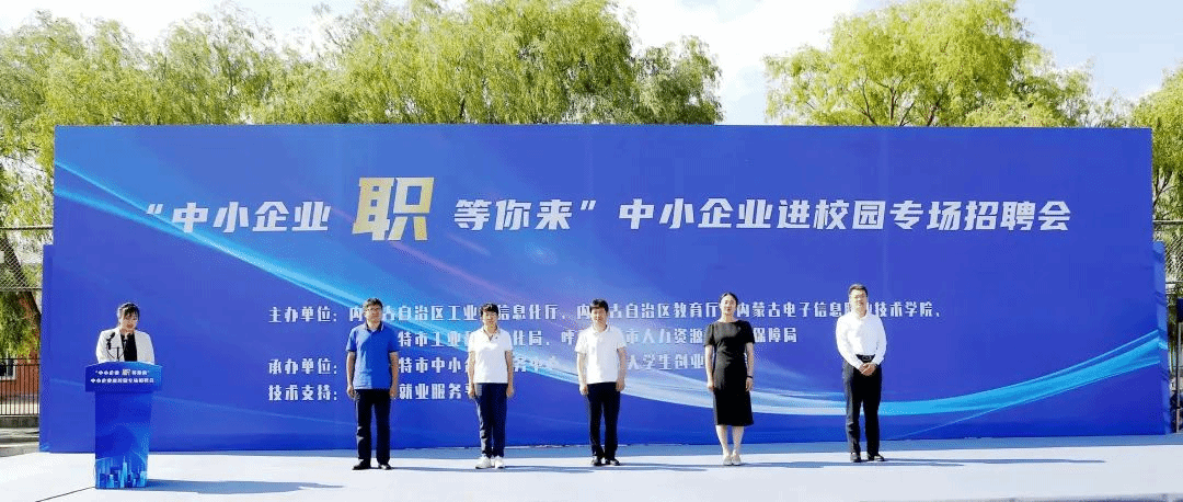 6月29日下午,学校联合内蒙古教育厅、内蒙古自治区工业和信息化厅、呼和浩特市工业和信息化局、呼和浩特市人力资源和社会保障局举行“中小企业职等你来”校园专场招聘会,共同给2023届毕业生再送一份温暖的毕业礼物。自治区工业和信息化厅三级调研员张小春,自治区高校学生就业创业服务中心负责人于荣娟,我校党委书记李春燕,党委副书记、校长王生铁,党委委员、副校长秦婷,呼和浩特市工业和信息化局副局长杨晓君,呼和浩特市人力资源和社会保障局副局长樊小全出席招聘会。