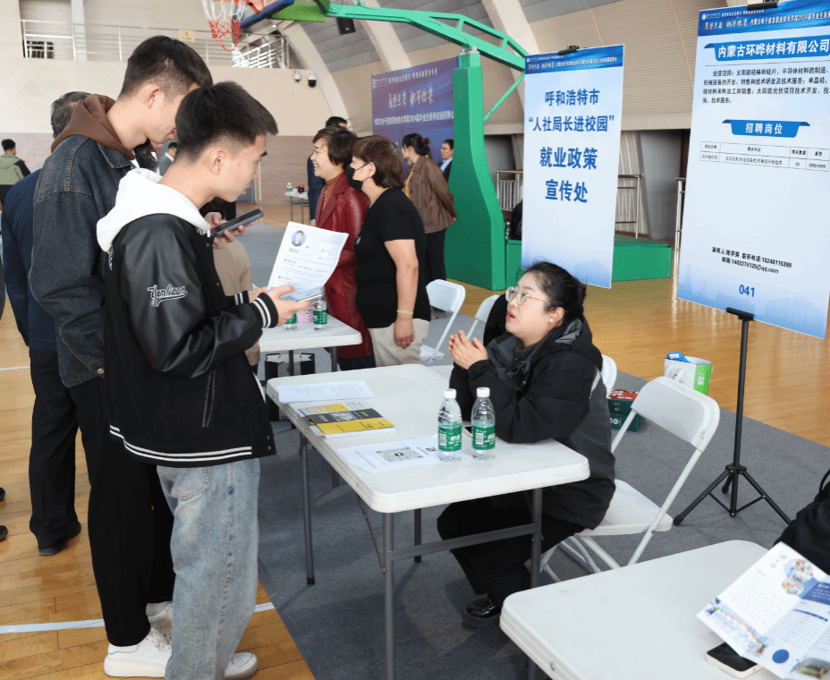 招聘会现场气氛热烈,秩序井然,毕业生积极主动与用人单位招聘人员交流,介绍自己的专业优势和求职意愿。本次招聘会还提供现场就业指导和政策宣讲服务,由呼和浩特市人社局工作人员和经验丰富的专家组成职场导师团队,为同学们提供一对一的呼和浩特市引才政策解读和就业指导等系列服务。