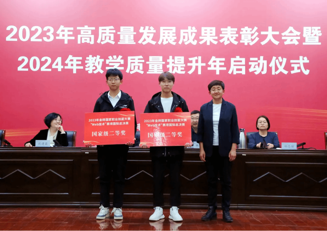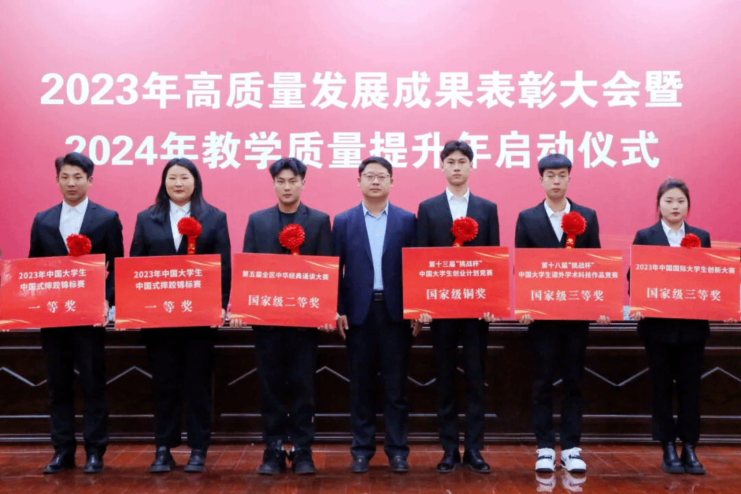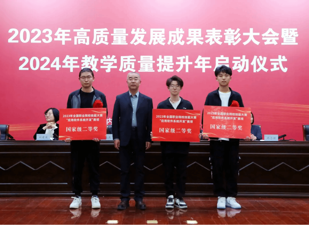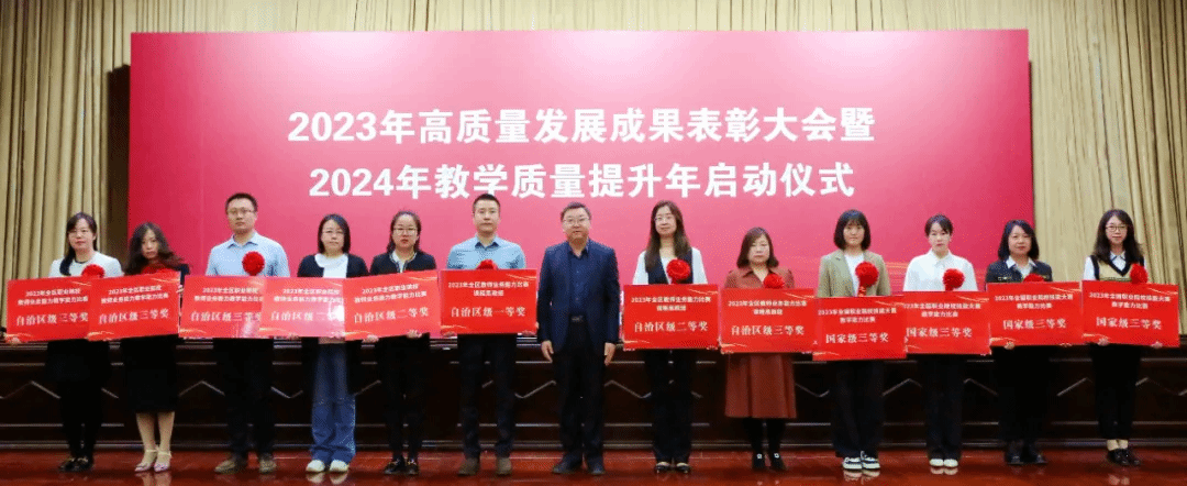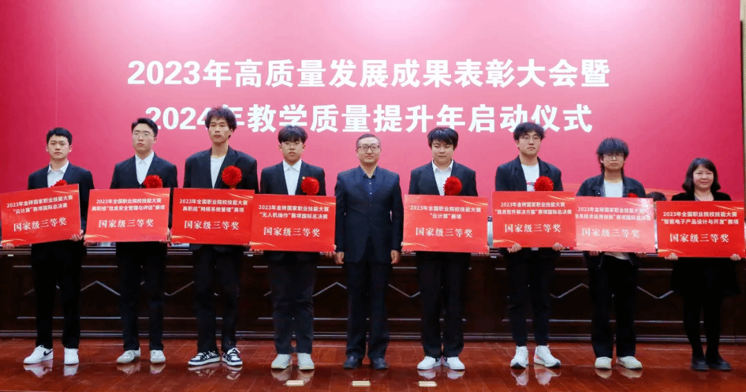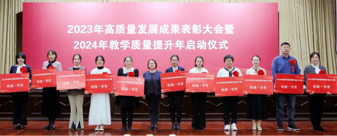 大会宣读了《关于2023年教师参加职业院校技能大赛的表彰决定》《关于2023年教师参加教学项目的表彰决定》《关于2023年学生参加职业院校技能大赛的表彰决定》《关于表彰2024年学校教师教学能力比赛获奖选手的决定》,表彰了参加2023年师生技能大赛、教学项目和2024年学校教师教学能力大赛取得优秀成绩的教师44人、学生47人和教学团队3个,并举行了2024年教学质量提升年启动仪式。李春燕代表学校党委向受表彰的所有团队和个人表示祝贺,向所有教师的辛勤付出表示感谢。