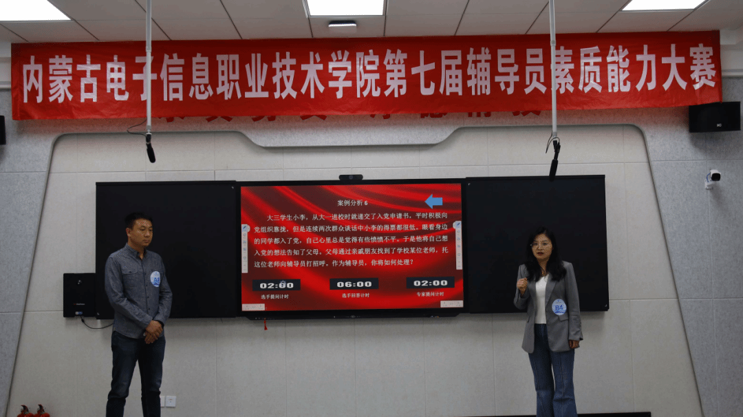 本次比赛分为“基础知识测试”、“谈心谈话”和“案例研讨”三个环节。基础知识测试包括基础知识测试和网文写作,考察了党的二十大精神,党的创新理论,路线方针政策;国家、自治区有关大学生思想政治教育工作系列文件,辅导员队伍建设的相关文件及要求;辅导员业务素质和专业知识;最新时事政治、法律法规以及公文写作能力等方面内容。