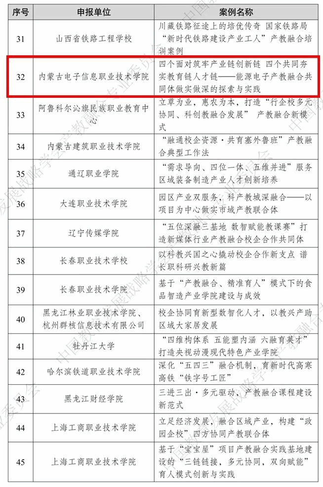 12月30日,根据中国教育发展战略学会产教融合专业委员会发布的《关于公布2023-2024产教融合校企合作典型案例名单的通知》,我校报送的《四个面对筑牢产业链创新链 四个共同夯实教育链人才链——能源电子产教融合共同体做实做深的探索与实践》案例成功入选。