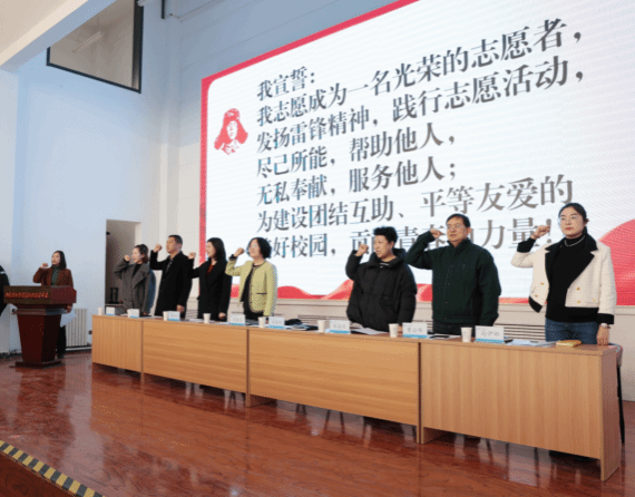 为深入学习宣传贯彻党的二十大和二十届三中全会精神,贯彻落实习近平总书记对深入开展学雷锋活动的重要指示精神,进一步弘扬“奉献、友爱、互助、进步”的志愿服务精神,在第62个“学雷锋纪念日”到来之际,学校举行学雷锋志愿服务活动月启动仪式。学校党委副书记刘建英出席并作动员讲话。宣传部、团委、各系有关同志,学校全体团干部和200名志愿者代表参加启动仪式。
