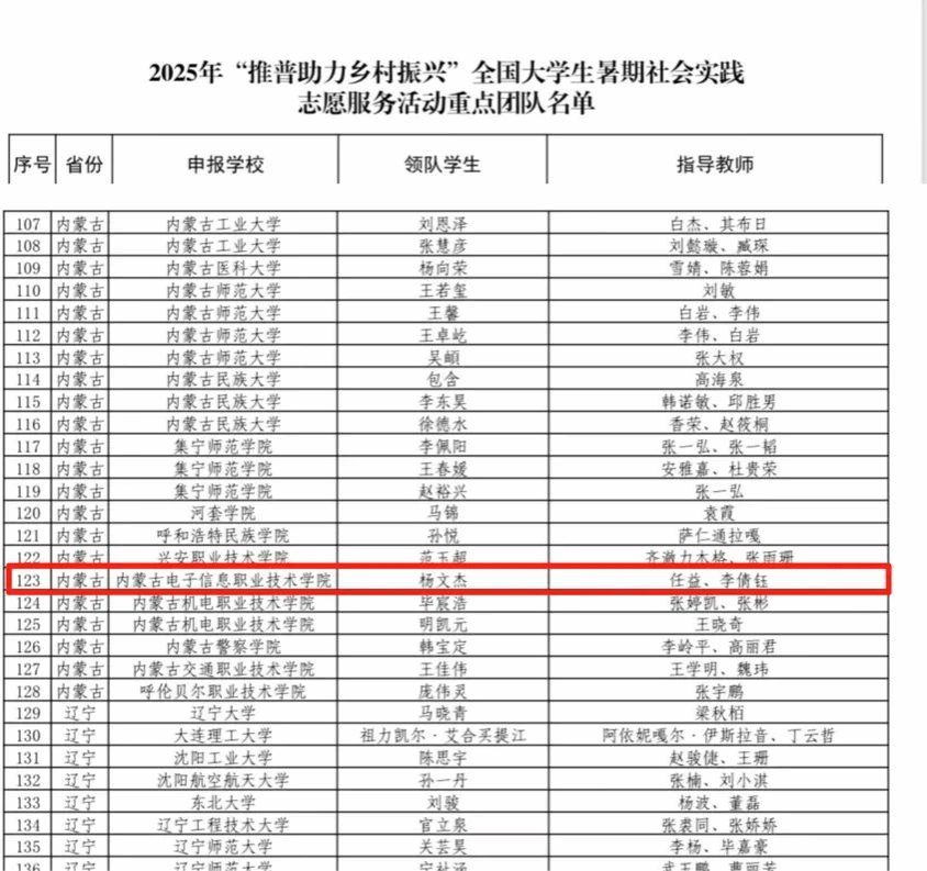 为深入贯彻落实党的二十大和二十届二中、三中全会精神,贯彻落实习近平总书记在全国教育大会上的重要讲话和关于语言文字的重要指示批示精神,落实《教育强国建设规划纲要(2024—2035年)》,加大国家通用语言文字推广力度,促进铸牢中华民族共同体意识,引导青年学生为中国式现代化贡献青春力量,教育部语言文字应用管理司、共青团中央青年发展部组织开展2025年“推普助力乡村振兴”全国大学生暑期社会实践志愿服务活动。我校电子商务系“E心益行”志愿服务队在1680所高校的8013支团队中脱颖而出,成功入选。