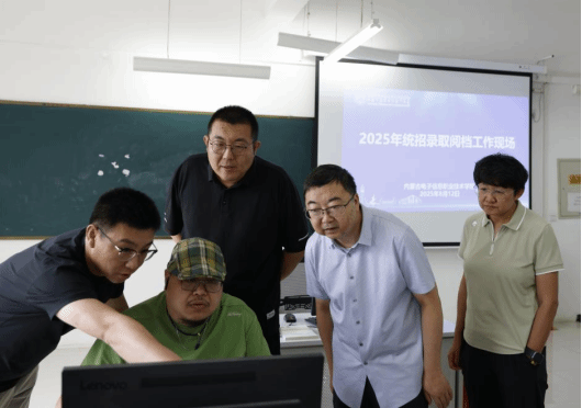 按照《内蒙古电子信息职业技术学院2025年招生工作实施方案》的工作安排,8月12日上午10点,学校2025年统招录取阅档工作在实训中心A座305机房进行,各工作组准时到岗,圆满完成统招录取阅档工作。