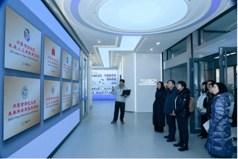 双方就此次调研内容举行座谈会,进行深入、务实的探讨与交流,分享各自在相关领域的实践探索与思考。座谈会后,调研组一行实地参观考察内蒙古师范大学AI驾驶舱实验室、中华民族共同体建设与边疆治理智能实验室。详细了解AI驾驶舱实验室整合多源数据,利用知识图谱与专用大模型服务教育教学、生态治理、畜牧业等领域的创新成果,以及中华民族共同体建设与边疆治理智能实验室汇聚多支跨学科团队,利用大数据、人工智能、VR/AR等前沿技术,在铸牢中华民族共同体意识的理论研究、文化传承、教育推广及边疆治理智能化方面开展的卓有成效的工作。