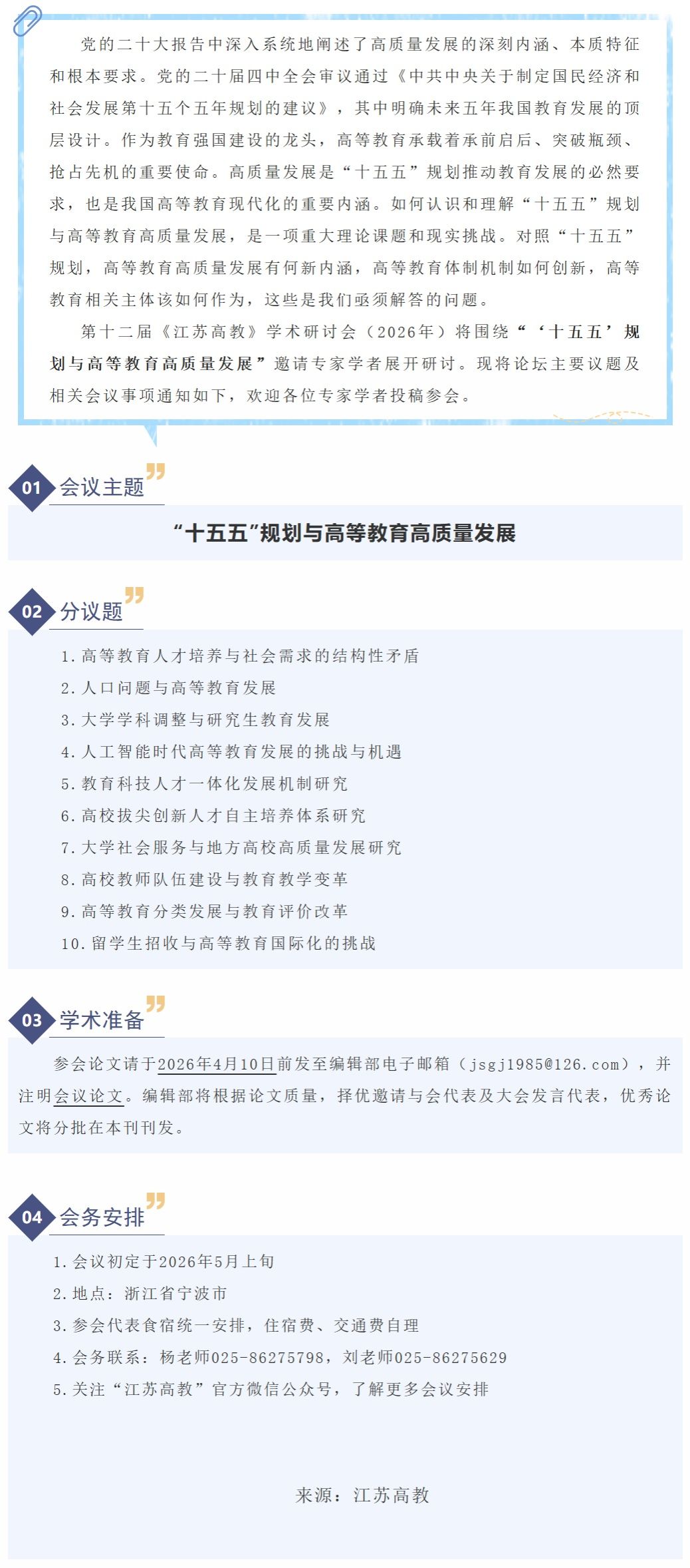 征文启事 | “十五五”规划与高等教育高质量发展”主题会议征稿通知