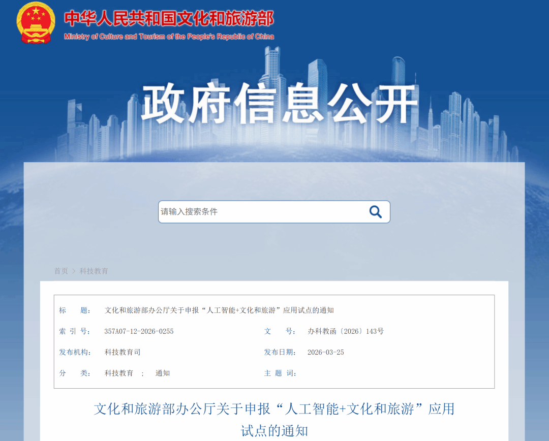 为贯彻党中央、国务院决策部署,落实《关于深入实施“人工智能+”行动的意见》要求,加快推进人工智能技术在文化和旅游领域深化应用,拟部署一批“人工智能+文化和旅游”应用试点。现将有关事项通知如下: