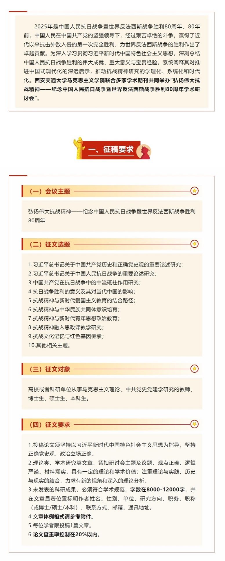 【征文通知】弘扬伟大抗战精神——纪念中国人民抗日战争暨世界反法西斯战争胜利80周年学术研讨会