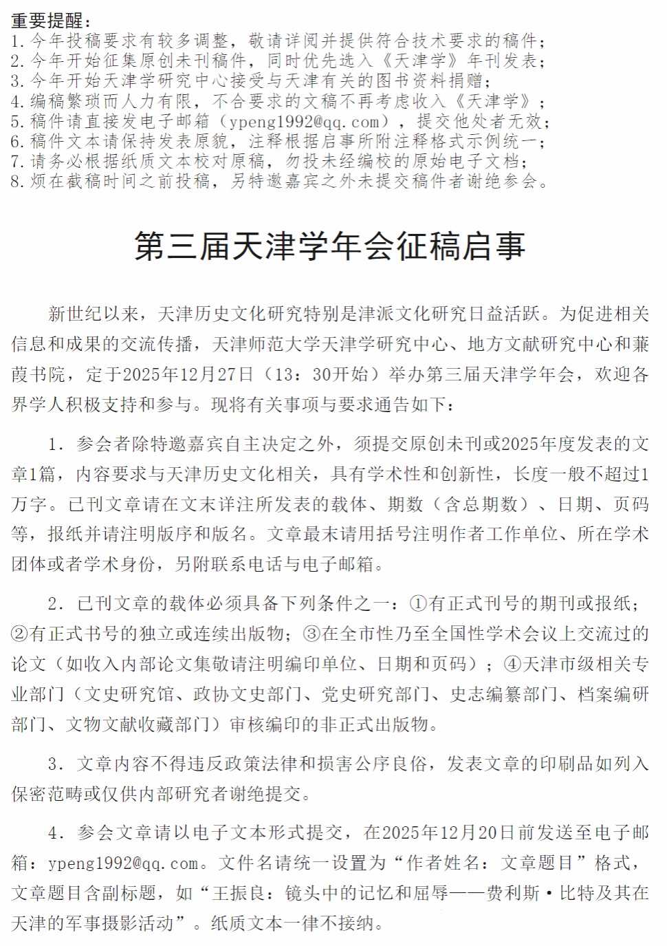 发布日期:2025-12-15 作者:施柏铨 来源: 天津学研究中心 点击: