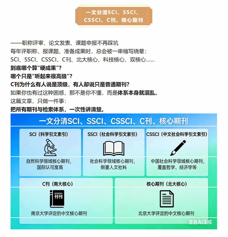分享 | 一文分清SCI、SSCI、CSSCI、C刊、核心期刊