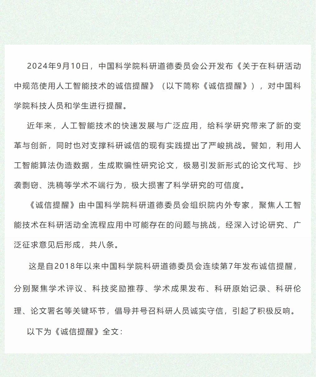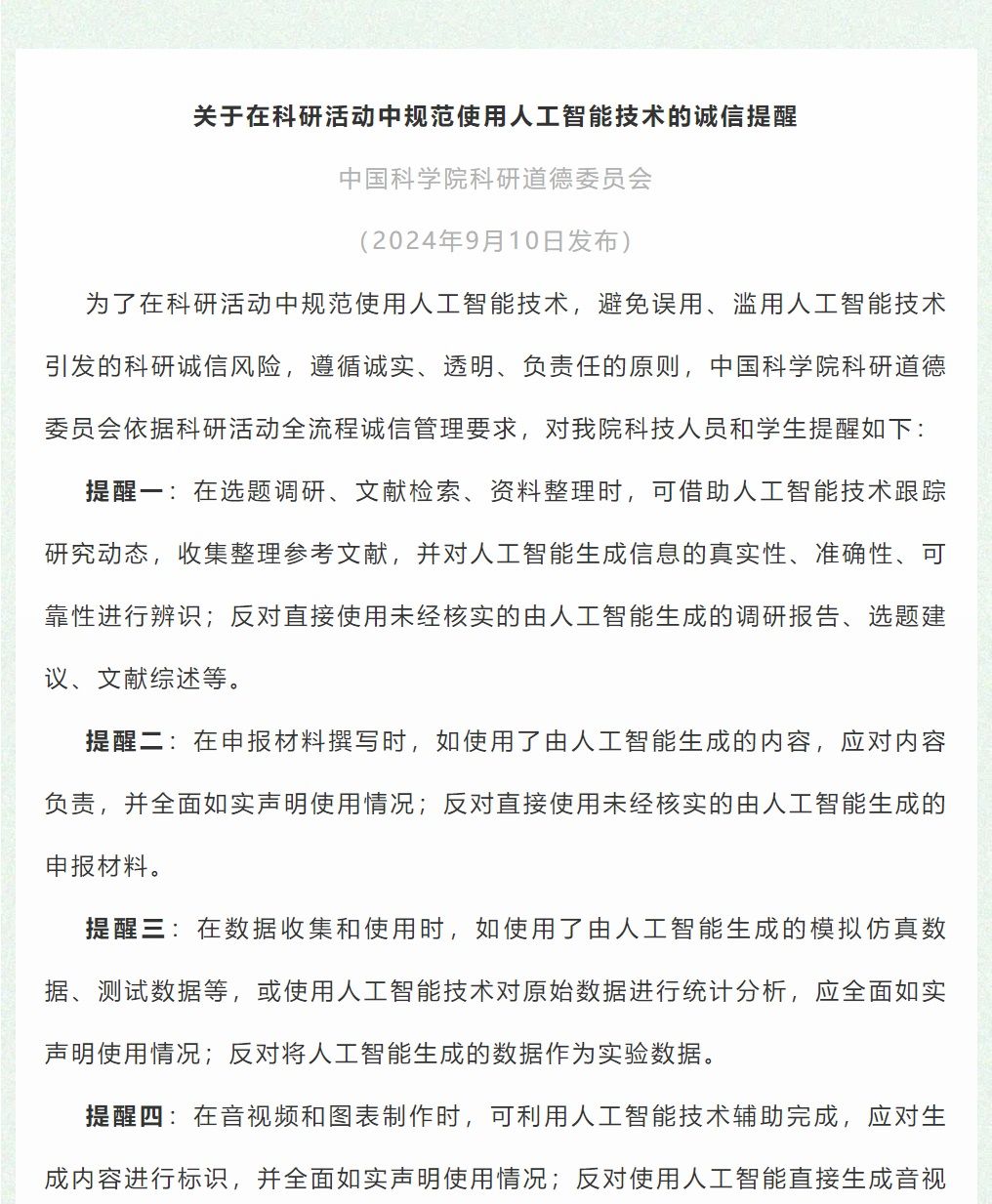 科研诚信 | 关于在科研活动中规范使用人工智能技术的诚信提醒(第六期)