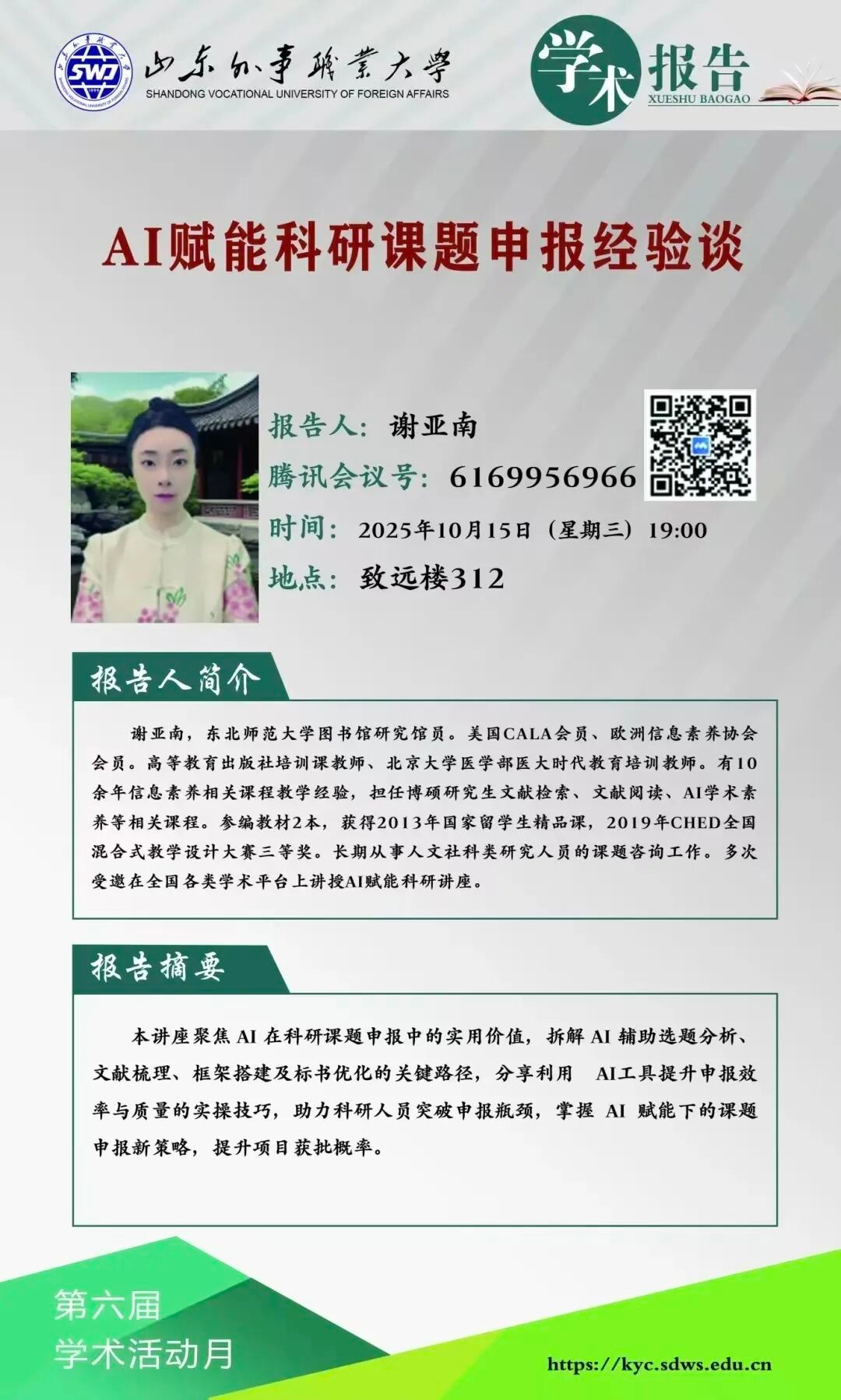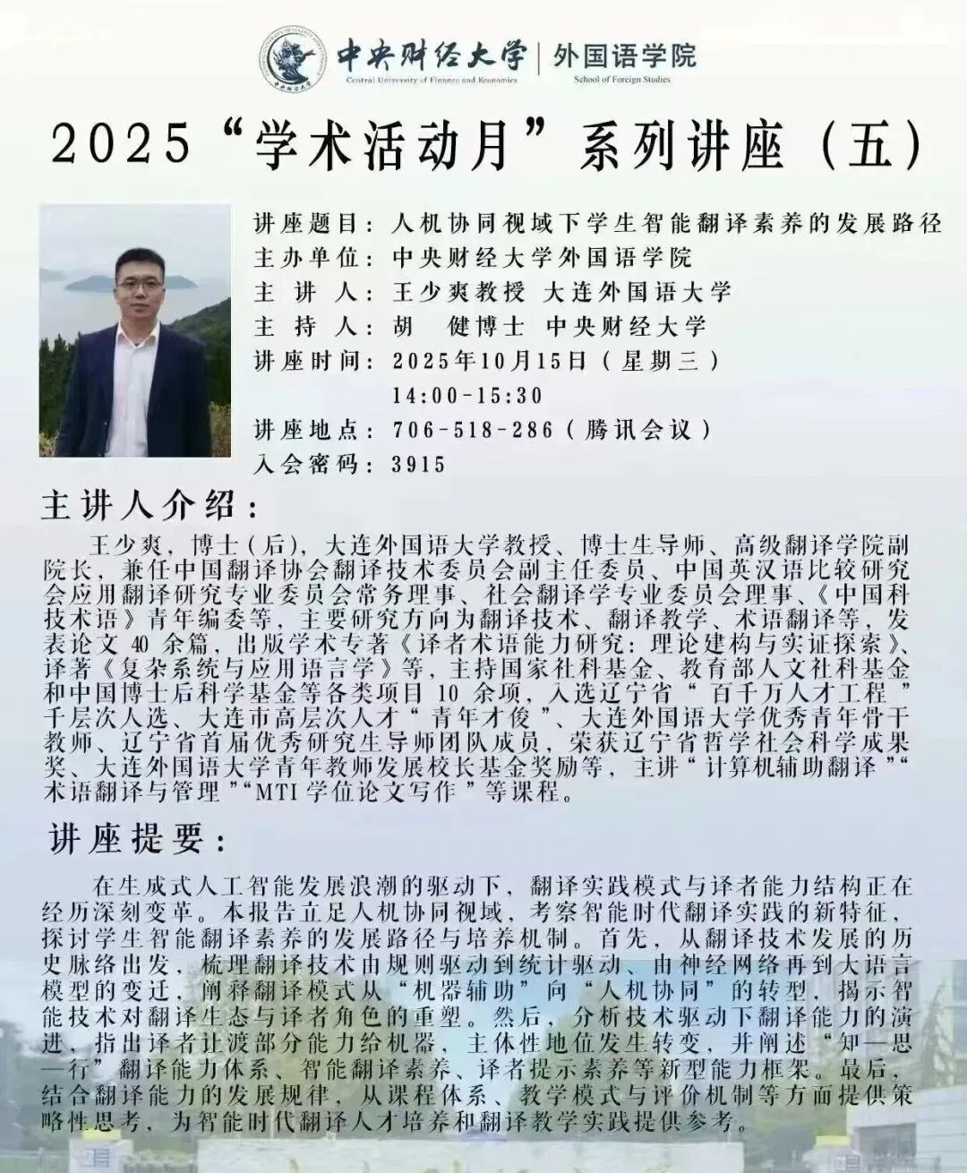 每日课表 | 10月15日学术讲座