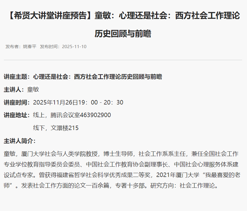 每日课表 | 11月26日学术讲座