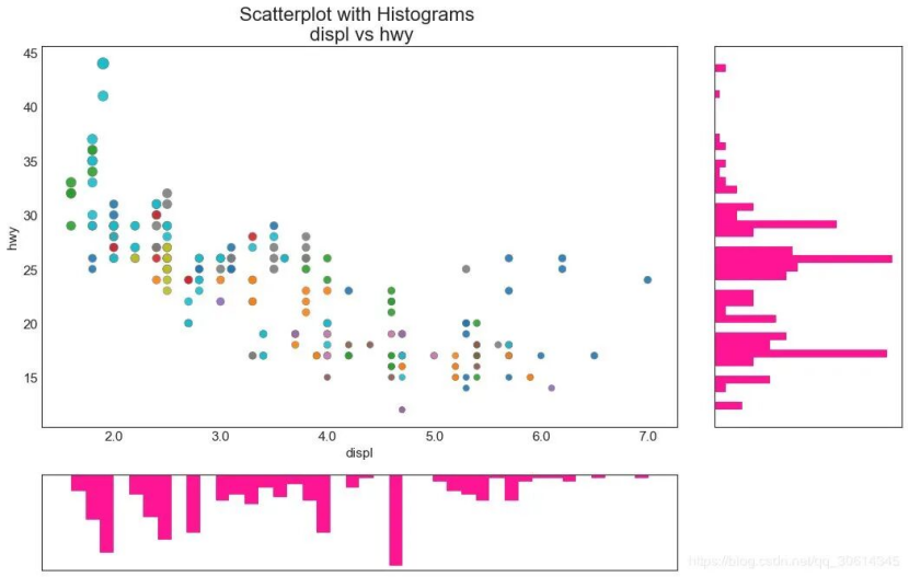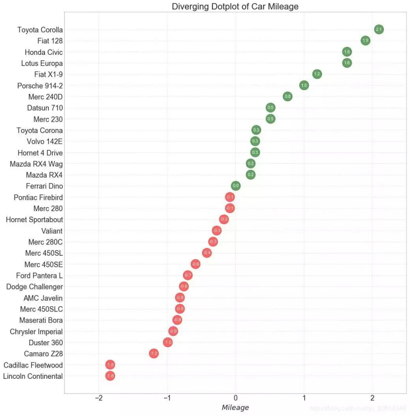 Scatteplot是用于研究两个变量之间关系的经典和基本图。如果数据中有多个组,则可能需要以不同颜色可视化每个组。在Matplotlib,你可以方便地使用。
