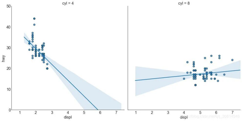或者,您可以在其自己的列中显示每个组的最佳拟合线。你可以通过在里面设置参数来实现这一点。
