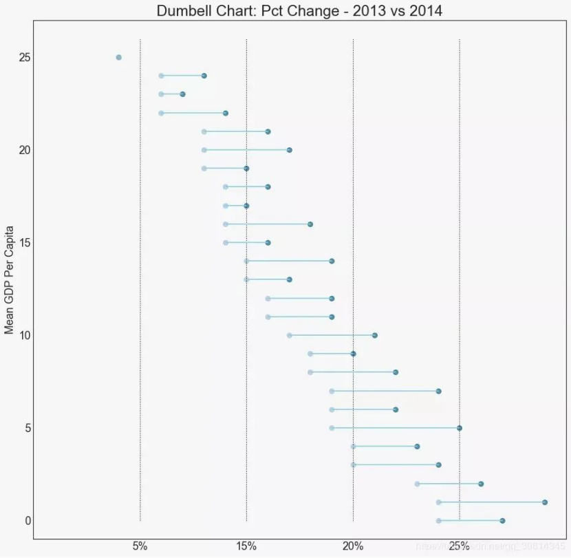 for i, p1, p2 inzip(df['index'], df['pct_2013'], df['pct_2014']):