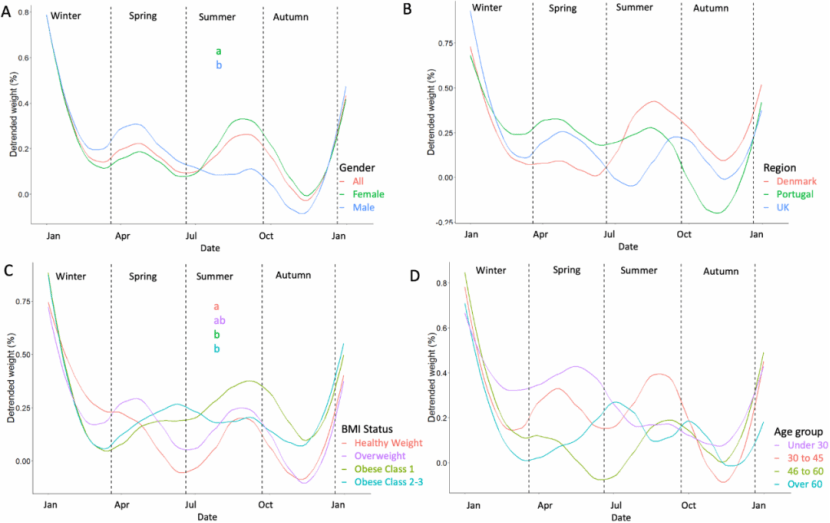 结论依然一致,那就是:冬季是一年体重最高的时候。