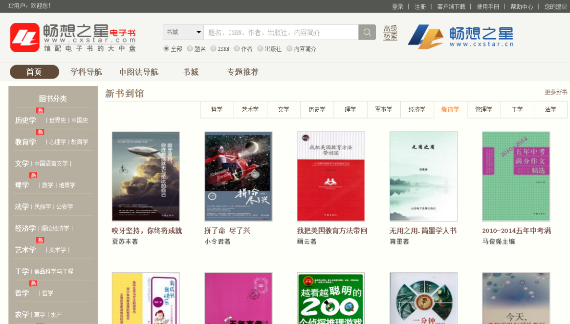 畅想之星电子书平台由北京畅想之星信息技术有限公司研发。该平台由畅想之星联合出版社倾力打造,旨在将出版社的正版电子书通过平台销售到全国各级图书馆。目前已经入驻出版社和文化公司达到350家左右,电子书数量40万余种。供货商和电子书数量还在不断增加中。