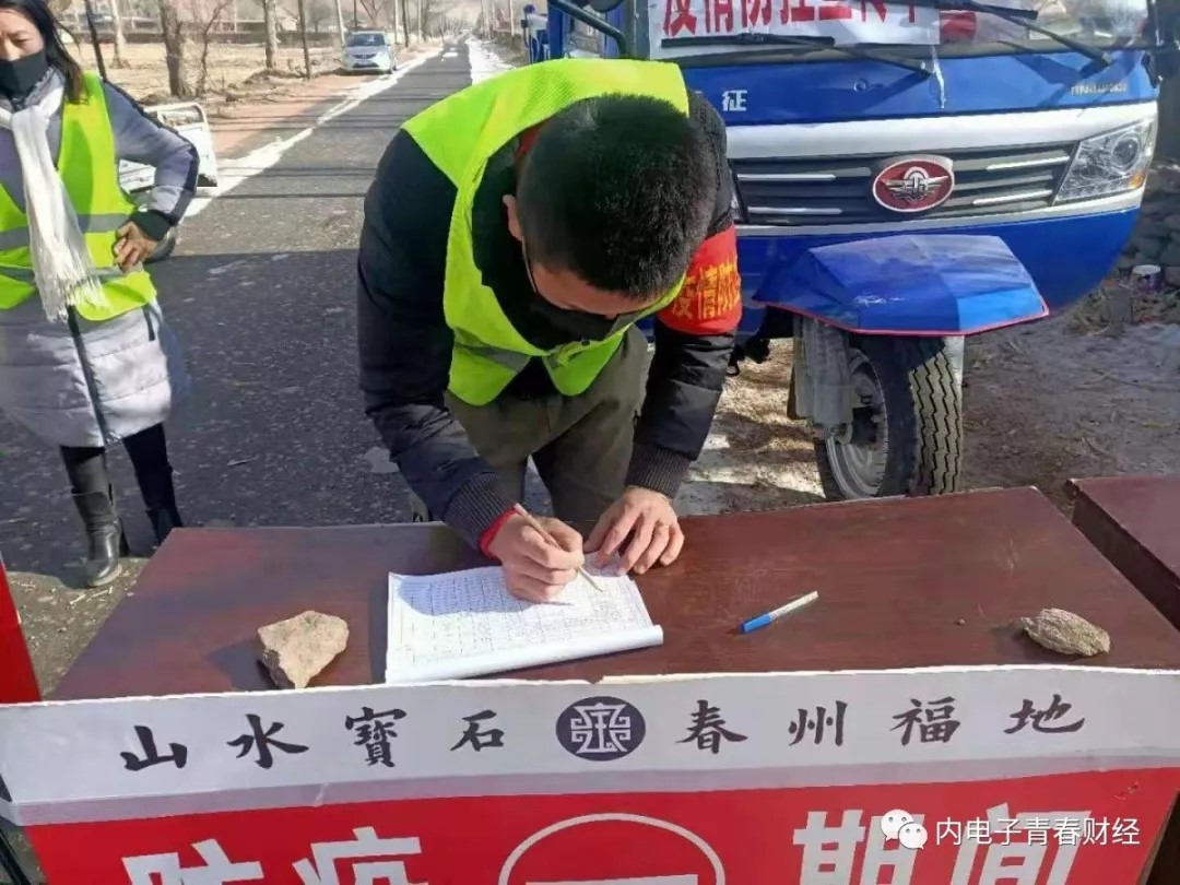 年轻人应该要求进步,利用一切机会锻炼自己。要艰苦朴素,要自找苦吃。”这是习近平总书记任厦门市副市长期间对广大青年说的一句话!疫情严峻作为一名新时代的青年大学生我觉得我应该做出自己的贡献。新年过后,当看到内蒙古自治区通辽市团委”返乡大学生到社区嘎查村报道”的号召,我主动在通辽市科尔沁左翼中旗敖包苏木巴彦敖包嘎查疫情防控检查点报道,因为来往人流量较多,我作为一名志愿者更要严格登记来往人员、车辆,测量体温,在相关卡口协助做好排查登记、体温测量等工作;分发传单、发放口罩、进行消毒,承担疫情防控期间的临时办公工作。在公共场合开展劝导和秩序维护,劝解居民减少外出,做好疫情防控网络宣传。紧密留意网络青年情绪及动态,及时转发主流媒体和市旗官方媒体消息。
