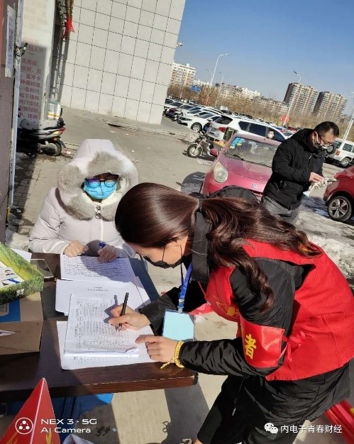 我是内蒙古电子信息职业技术学院的一名大一学生李爽,是学生会干部中的一员,国家有难我必当竭尽全力尽己所能,疫情无情,但人间有真爱。在疫情的魔抓伸向我们时我身先士卒,义不容辞成为一名防疫志愿者。为社区防疫工作带来一份保障。社区防疫工作主要负责:入户登记返乡人员情况调查,发放出入证,出入登记,统计隔离人员体温,劝阻外来车辆人员不得入内。严格把控,时实监管,准确测量。将每一名群众的安全系于身上。疫情工作期间我深刻的感觉到我的责任与义务。用我绵薄的力量给大家带来一份安心。冬已尽,春可期,愿祖国山河无恙,人间皆安。